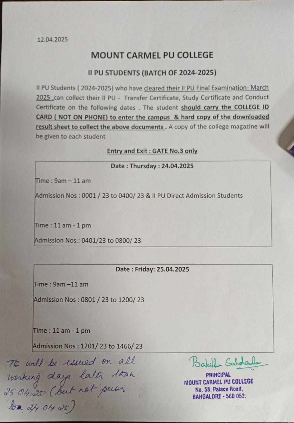 Mount Carmel PU College for Women, Bengaluru, managed by the Congregation of the Carmelite Sisters of St. Teresa, was established in 1948, to meet the escalating demand for the education of women in India.